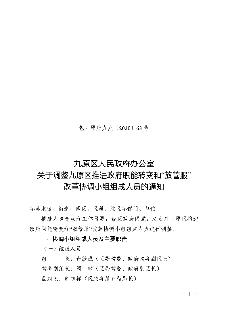 36365_好多假365平台_365bet线上棋牌区人民政府办公室关于调整36365_好多假365平台_365bet线上棋牌区推进政府职能转变和“放管服”改革协调小组组成人员的通知