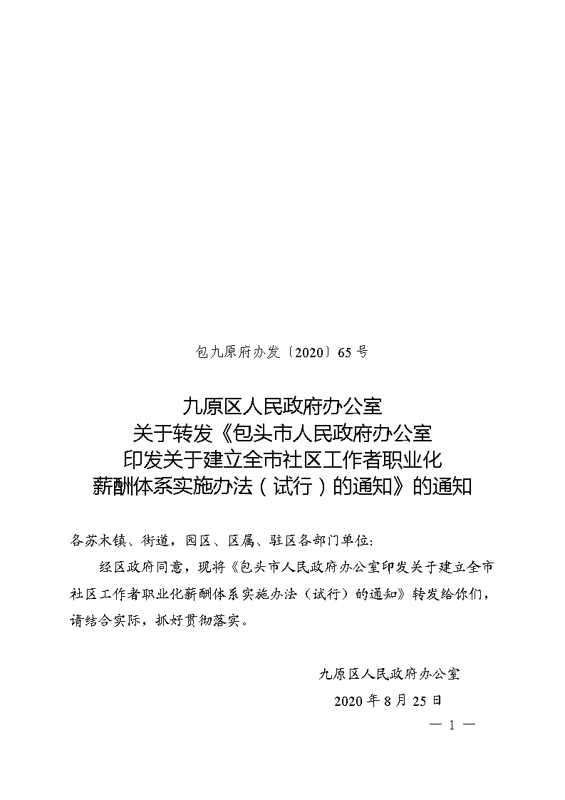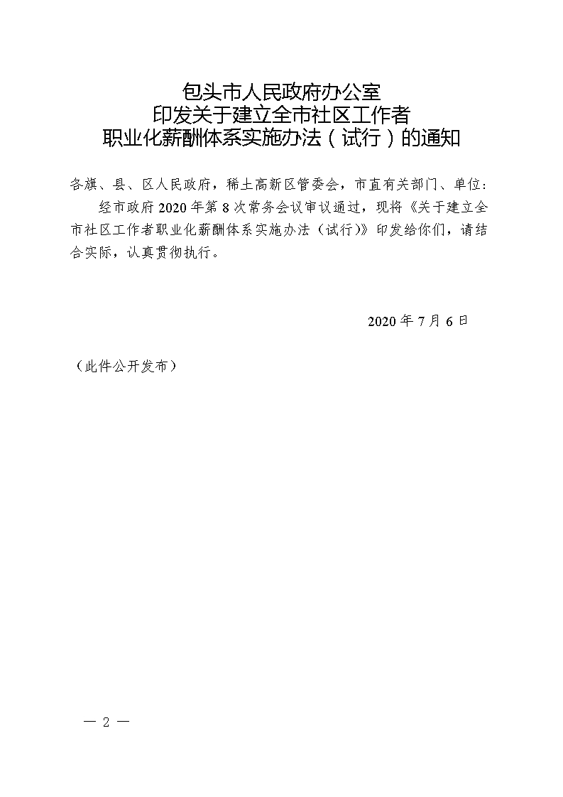 36365_好多假365平台_365bet线上棋牌区人民政府办公室关于转发《包头市人民政府办公室印发关于建立全市社区工作者职业化薪酬体系实施办法(试行)的通知》的通知